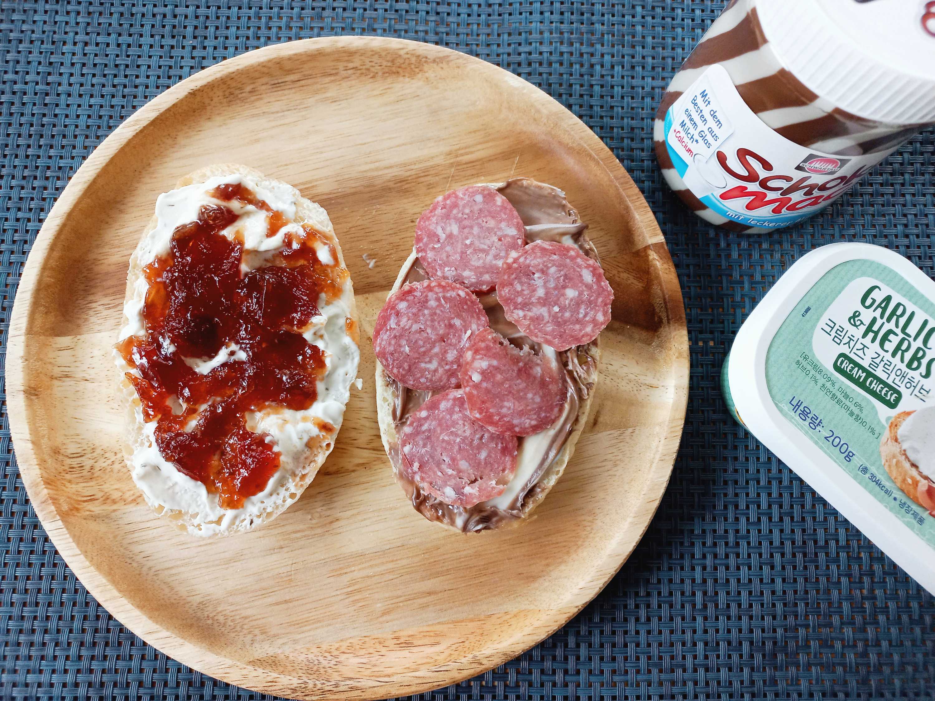 빵에 초코크림이나 크림을 바르고 그 위에 살라미를 얹어 먹는 조합이 의외로 나쁘지 않다는 것도 그때 알았습니다.